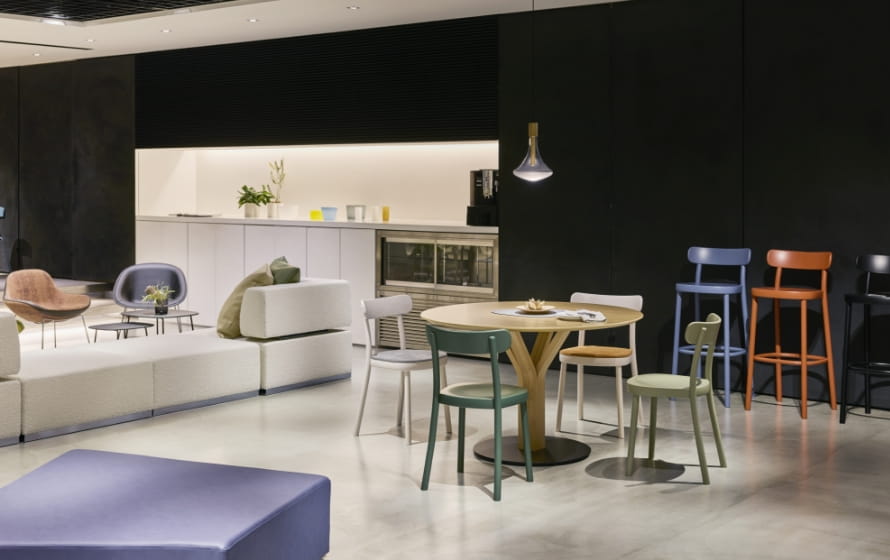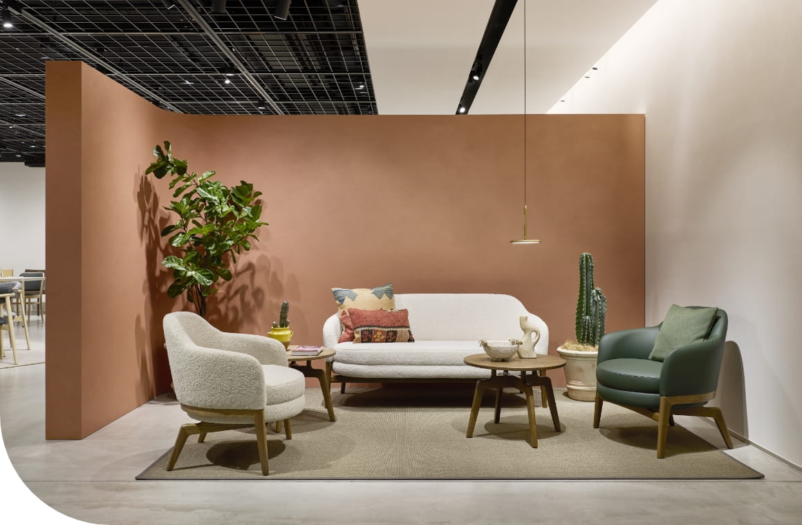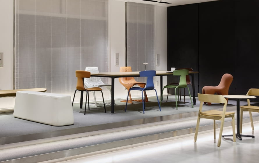 製品に実際に触れて座ってお確かめください。張地、木部のカラーサンプルもご用意しています。